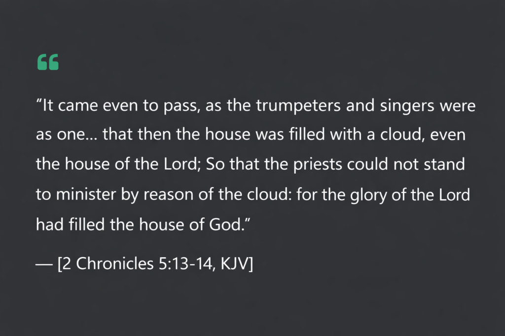 Scripture notes that the singers and musicians were unified “as one.” Harmony in worship preceded the cloud.